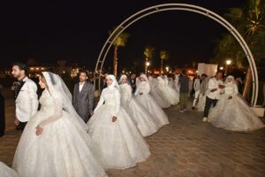صور حفل زفاف جماعي لـ50 عريسا وعروس من الصعيد تنظيم مؤسسة الجود