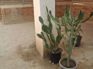 يراقبون هند وهى تجدد حيوية الشجيرات المتناثرة في المكان وإضافة نباتات جديدة من حديقتها فى كل زيارة، خاصة الصبار.