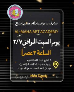 تفتتح الفنانة التشكيلية مها الجندى أكاديمية ورش الفنون التشكيلية الجديدة المها أرت أكاديمي غدا السبت 7 فبراير 2026 بحى مصر الجديدة بحضور لفيف من الشخصيات العامة والفنانين